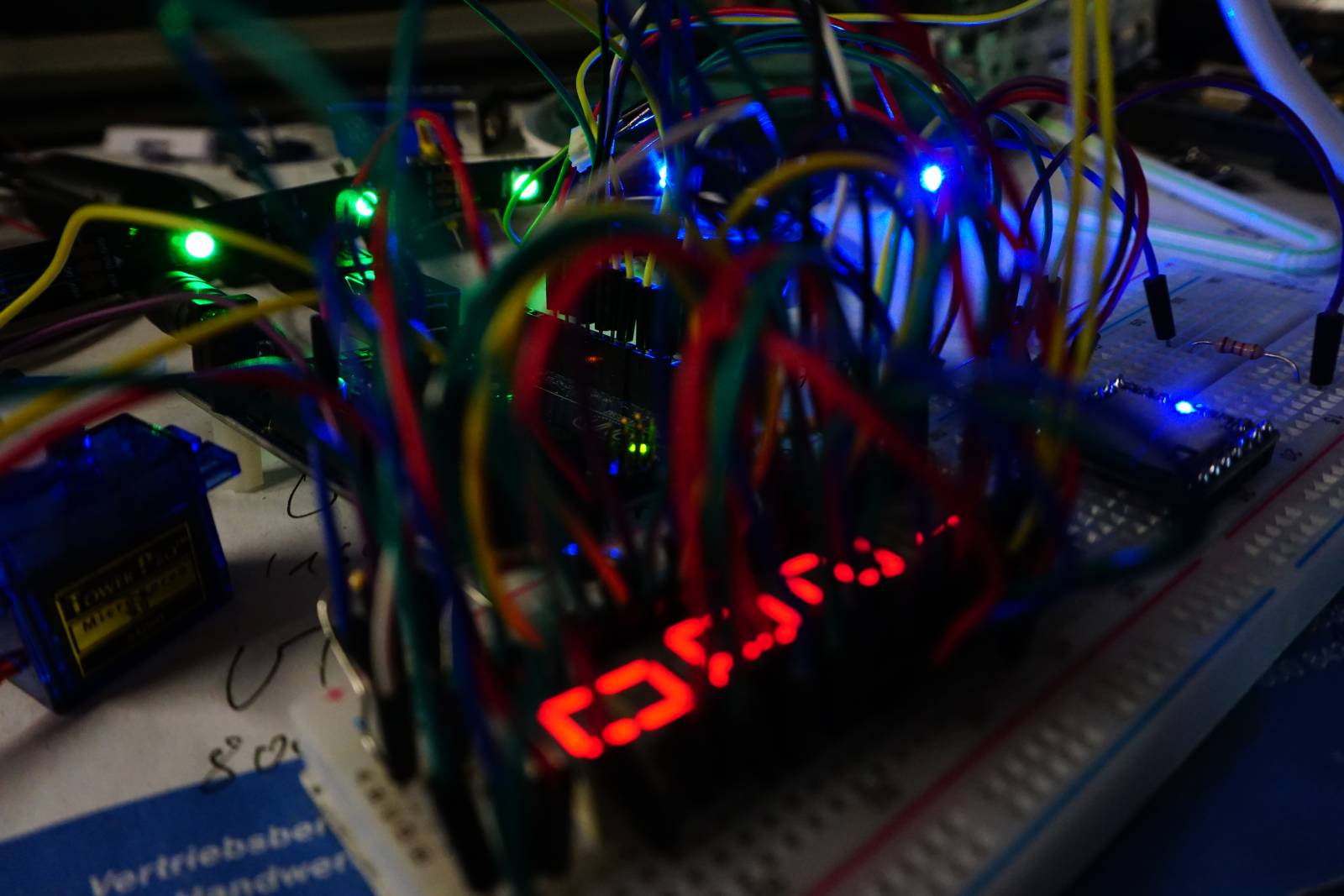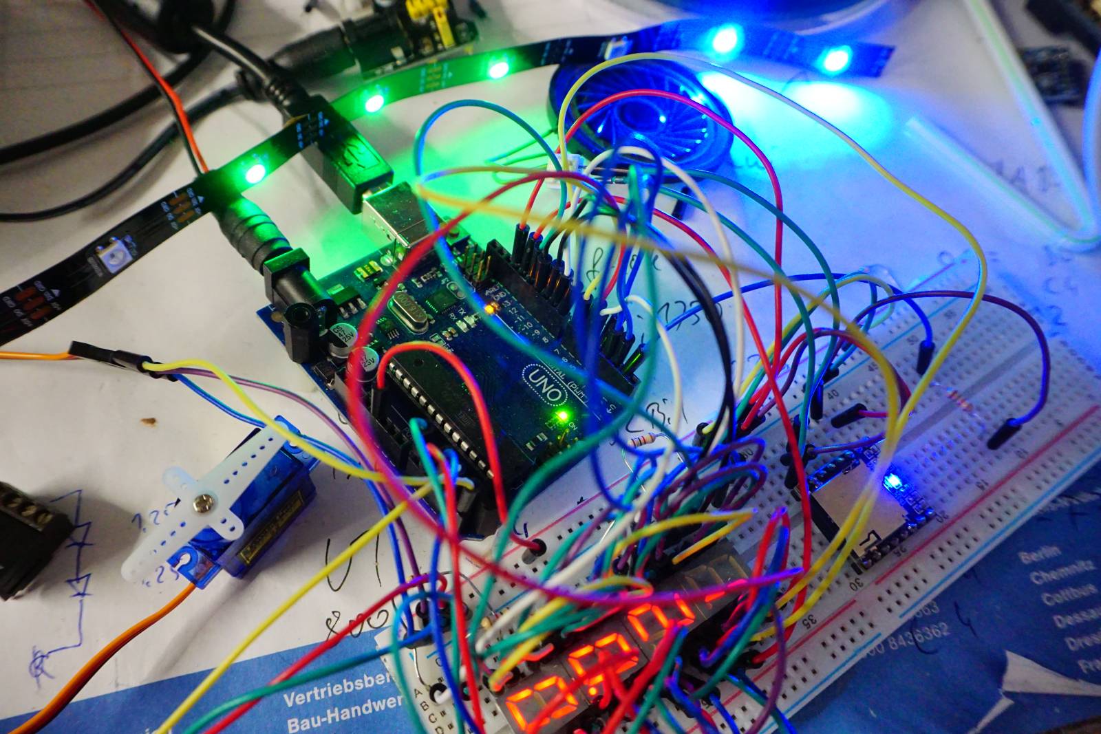 Zuerst war da die Idee und die Frage, ob sich das so überhaupt programmieren lässt. Deshalb erst mal alles auf ein Steckbrett gesteckt.